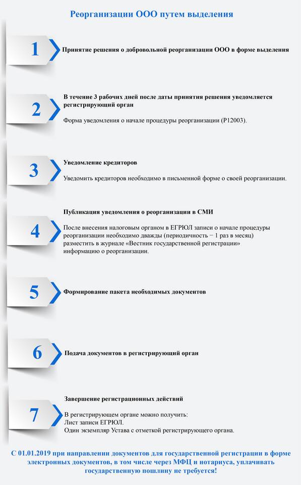 Выделение | Из компании выделяется новое юридическое лицо без прекращения основной | 1 |