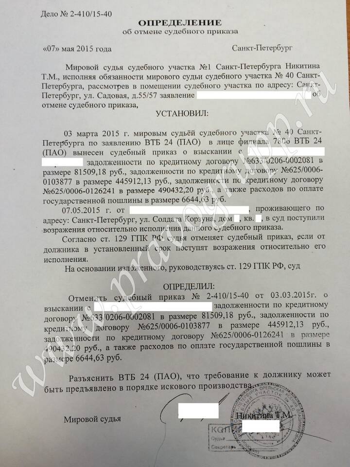 Копия судебного приказа | Обязательно с отметкой о вручении |
