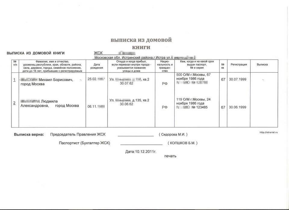- ФИО всех зарегистрированных лиц
