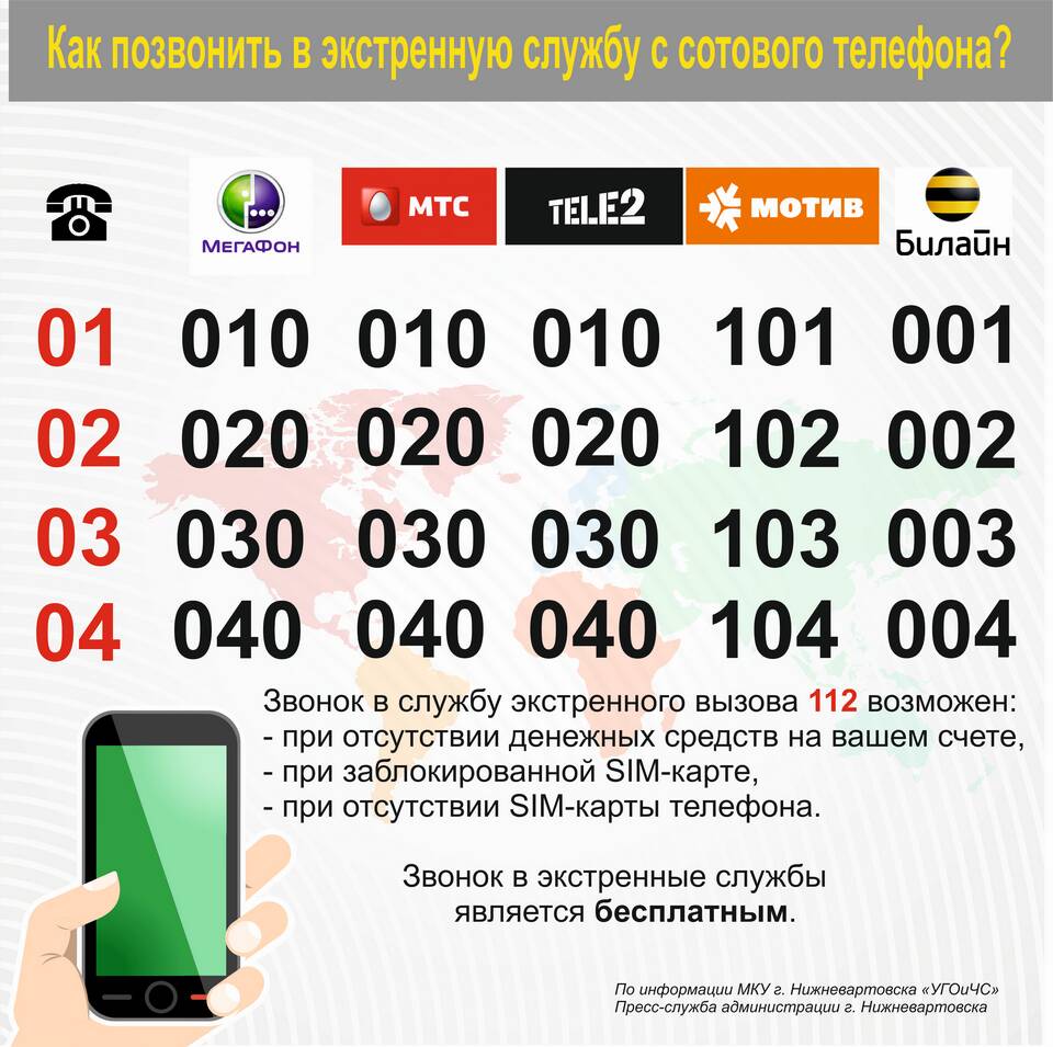 112 | Единый номер экстренных служб (бесплатно, работает даже без SIM-карты) |