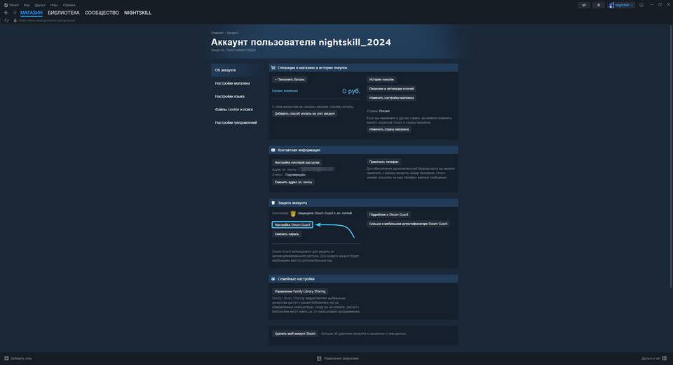 - Перейдите в раздел "Steam Guard" в меню приложения