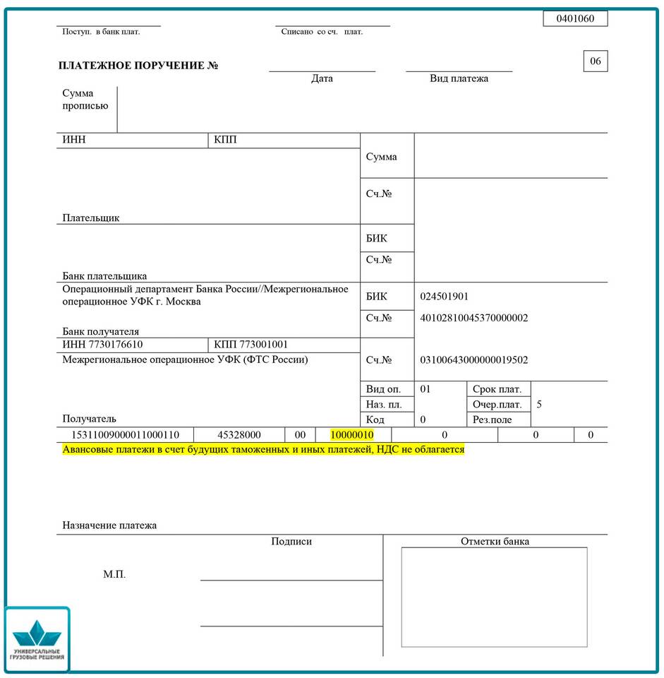 - НДС в назначении платежа (если применимо)