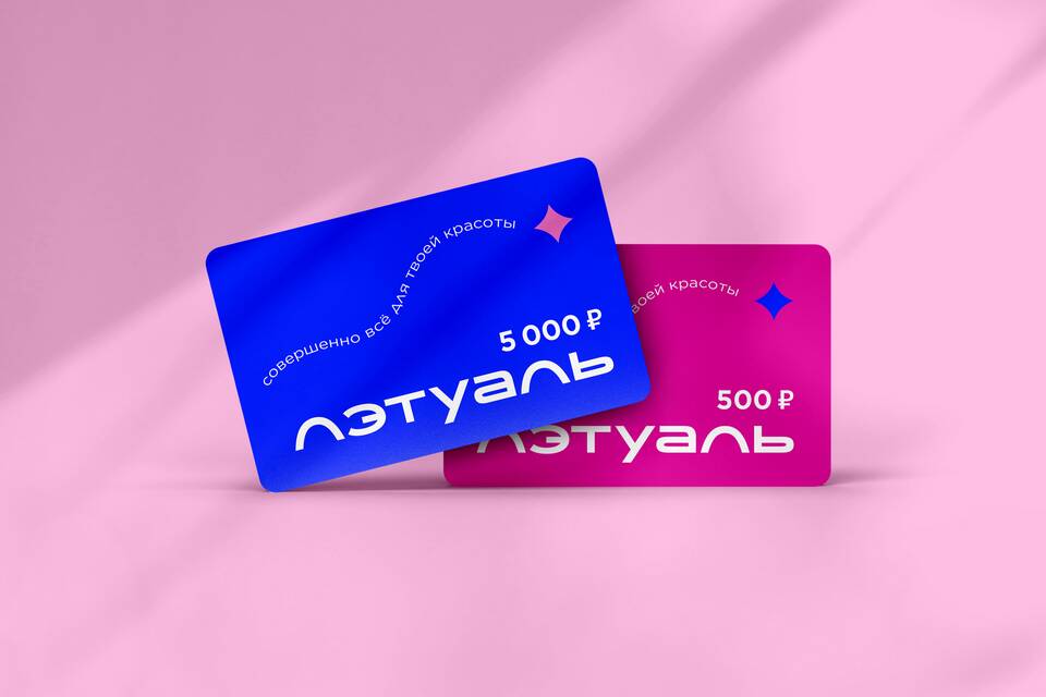 Подарочная карта Летуаль имеет узнаваемый дизайн, соответствующий фирменному стилю сети магазинов. Карта выпускается в пластиковом и электронном форматах.