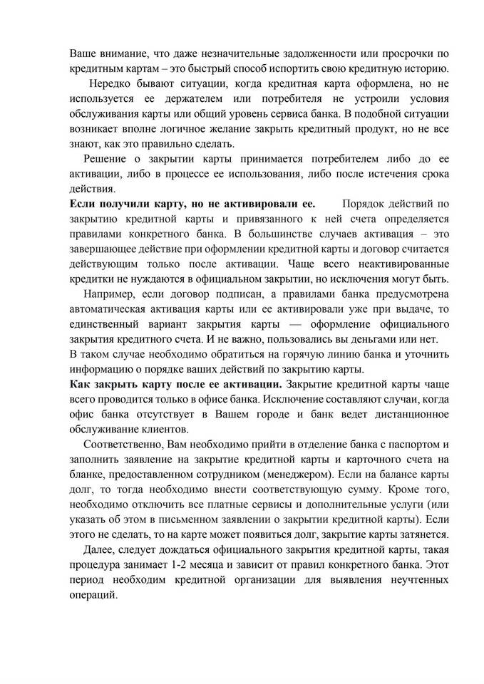 - Уничтожьте физическую карту после закрытия