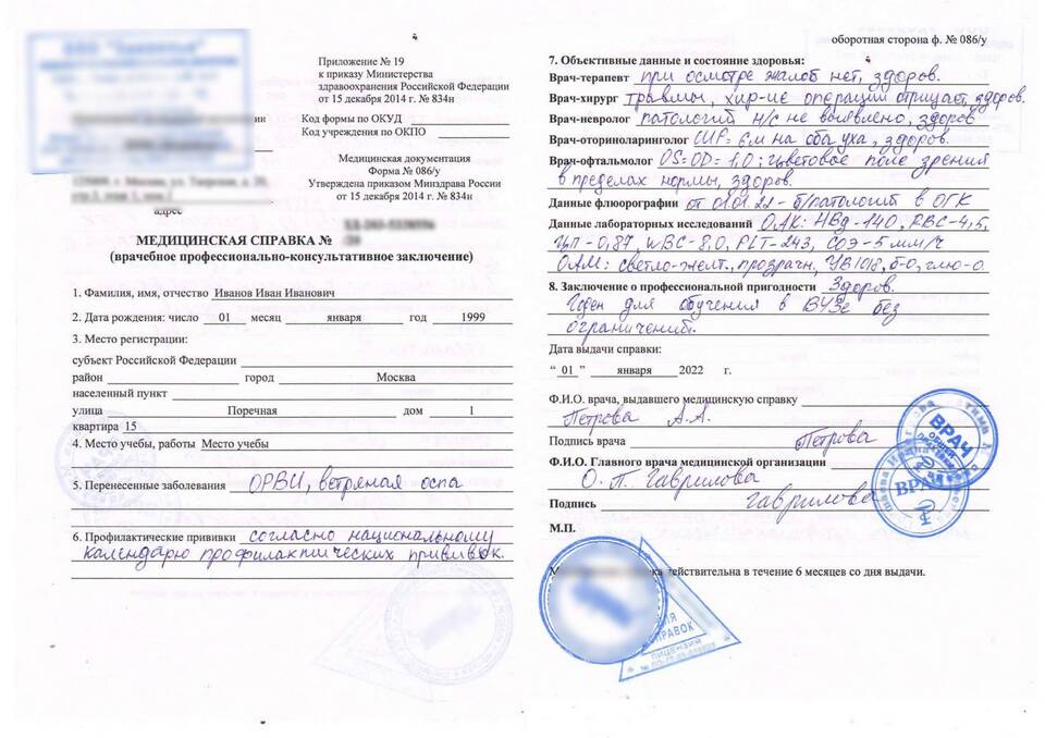 Медицинская | Медкарта, направление от колледжа, полис ОМС |